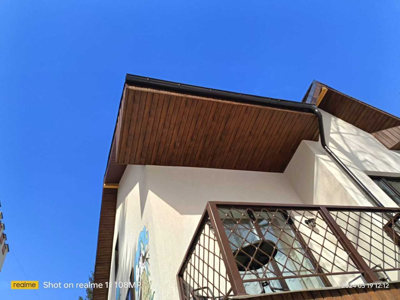 Софит с центральной перфорацией предназначен для подшивки карнизного и фронтонного свесов. Обеспечивает эффективную вентиляцию подкровельного пространства с целью исключения образования конденсата. Является и декоративным элементом, т.к. скрывает нижнюю часть кровли и придает ей аккуратный и законченный вид. Возможная длина, от 0,1 пог. м. до 4,0 пог. м