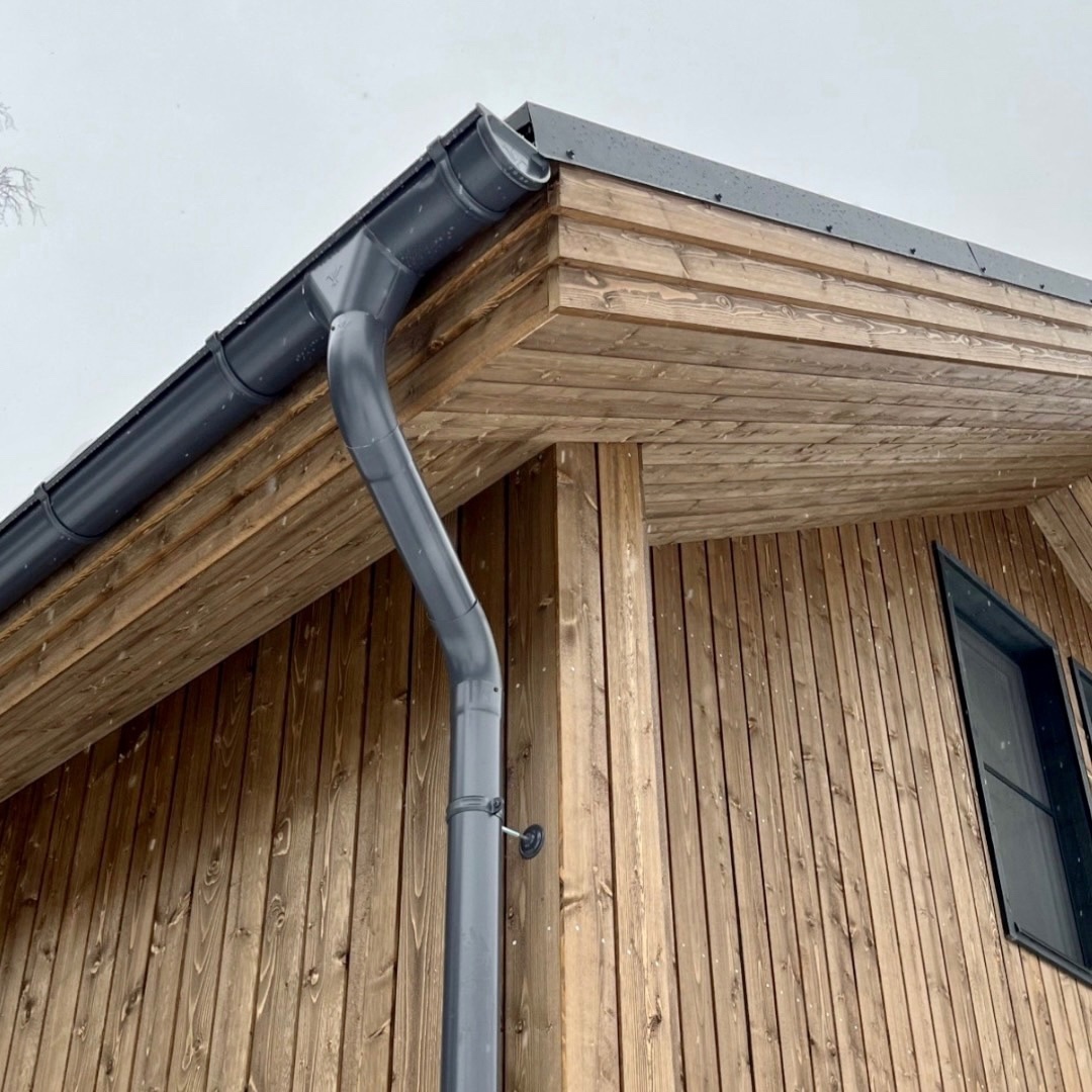 Конструкция крюка имеет более вытянутое и глубокое ребро жесткости, поэтому крюк выдерживает повышенные силовые нагрузки. Передний замок крюка фиксирует завиток желоба снаружи, и благодаря этому желоб удобно монтировать даже после установки фартука-капельника. Задний замок имеет конструкцию, исключающую смещение желоба под нагрузкой. Отверстия под крепеж выполнены с зенковкой под шляпку в потай. На передней части крюка расположен фирменный штамп - лилия. Поставляется с комплектом креплений.